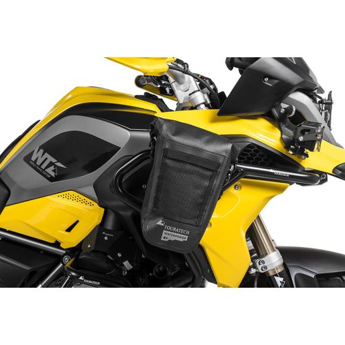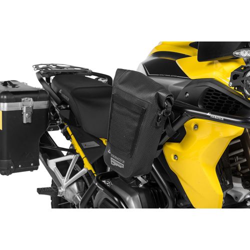This new product range from Touratech combines everything you could wish for in waterproof soft luggage: These pieces of luggage are extremely robust - they can take a lot of rough treatment, even a fall. The bags are of course extremely waterproof, regardless of which direction the rain comes from. Their extremely good quality is reflected in workmanship, fit and durability. On top of this, these bags sport an extreme design with many useful features and an unmistakable colour scheme: black on the outside and yellow on the inside - to help you find what you're looking for more easily.