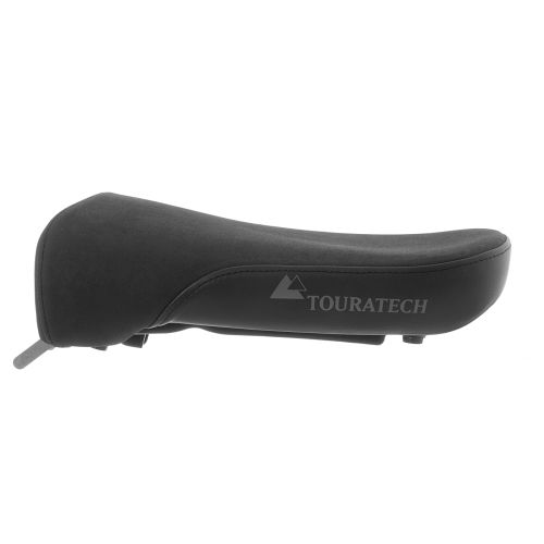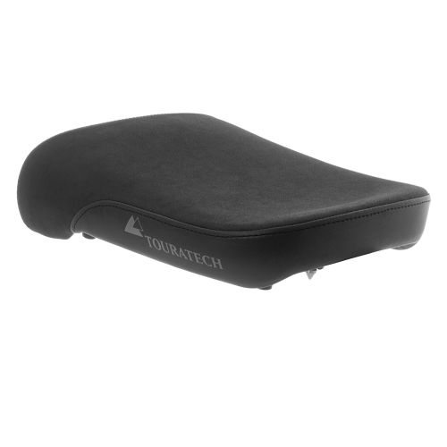 Our comfort seats for the Tiger 800 eliminate a frequently complained about weak point on the Triumph, which otherwise comes well equipped with high-quality, practical features. The drawback to the standard seat is that its foam core compresses too quickly over long trips, causing the sitting position to deteriorate. This situation eventually results in pain in the buttocks, back and legs. Our solution to this problem is a high-strength, anatomically shaped foam core with improved contours. This seat is available in three heights and is upholstered in non-slip, sweat-resistant fabric. Both the rider and passenger can enjoy the benefits of a Touratech comfort seat!