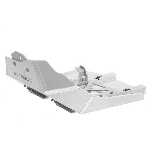 In creating the Honda CRF1000L, the developers at Honda have produced a motorbike that practically invites you take it on an off-road excursion. Our development team were able to make a number of further improvements to its positive off-road characteristics. This engine guard is an absolute revolution! Touratech have attached great importance to its robustness and functionality. Serious damage, such as holes in the engin block, can be effectively prevented by fitting the large Touratech engine guard. Maximum strength is provided by multiple folded ridges in the 4 mm thick aluminium base plate, while an additional lower stainless steel attachment plate on the engine ensures the force of an impact is distributed over a large area via 6 bolting points. Ground clearance is not restricted by these two base plates. Another benefit is that the front of the engine guard rises up far enough to prevent damage to the oil filter and oil cooler as well. Plastic rails on the lower part of the base plate ensure that the bolt heads - which are already sunken - are completely covered. Not least, the plastic rails facilitate ”sliding” the bike over rocks, stones and tree stumps. Almost as an afterthought, they also prevent dirt buid-up. To sum up, the large Touratech engine guard for the Honda CRF1000L is a product that meets the most demanding requirements as well as being an absolute visual highlight!