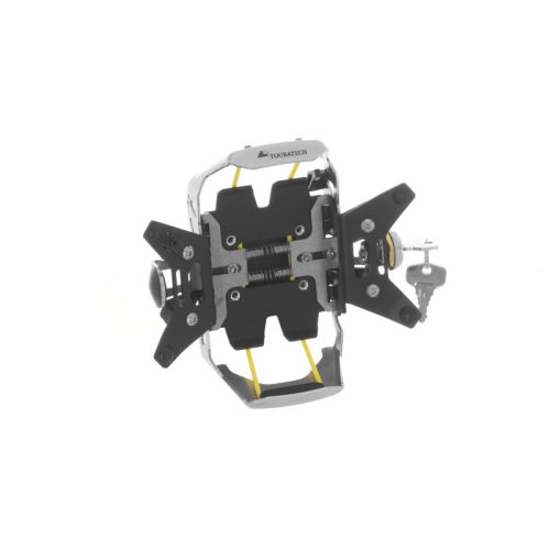 The Touratech handlebar mount for the Zumo 590 / 595 LM is like a hand that closes securely around the Zumo to hold and protect it. Our developers deployed their ingenuity and advanced technical expertise to design this lockable handlebar mount that locks and unlocks quickly and with ease. The Zumo 590 / 595 LM cradle with power supply is integrated into this Touratech motorbike mount. First of all, insert the Garmin Zumo into the bracket and it connects to the built-in Garmin power supply. Then push the spring-mounted locking wings together and feel them click securely into place. Now you can lock the bracket via the integrated cylinder lock. The mount has been designed to allow the system to be switched on and off while the mount is locked. This handlebar mount can be ordered keyed alike with your existing Touratech accessories.