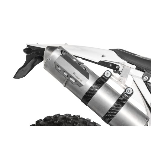 Avoid the meltdown - prevent bags and side panels from touching your bike's exhaust! The heat shield by Touratech is the simple, lightweight, universal heat problem-solver for virtually any motorcycle exhaust system.