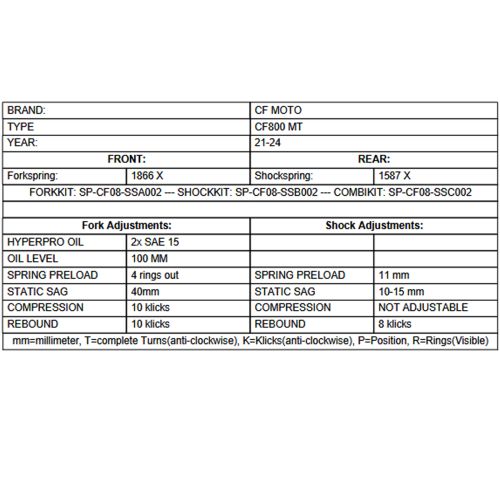 Progressive replacement springs for fork and shock absorber for CFMOTO 800MT (2021-)