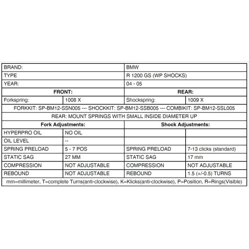 Progressive replacement springs for front and rear shock absorber BMW R1200GS 2004-2005 "BMW Original shocks WP"
