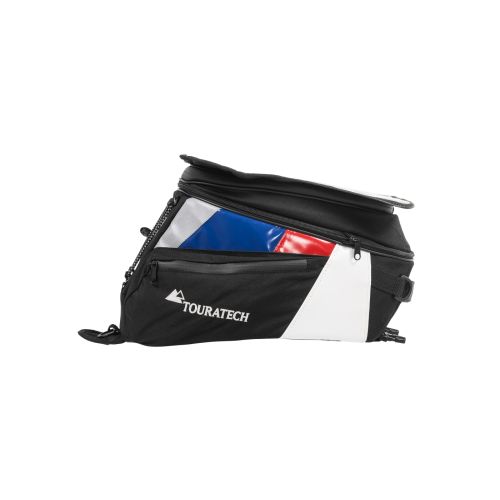 Thanks to the water-repellent cable hole, it's now easy to charge a mobile phone in the tank bag -plus the side pockets have an expansion pleat, which means there's even more room inside them than you would think.