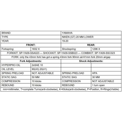 Touratech Suspension lowering kit -20mm for Yamaha NIKEN (GT) 2019 - 2020