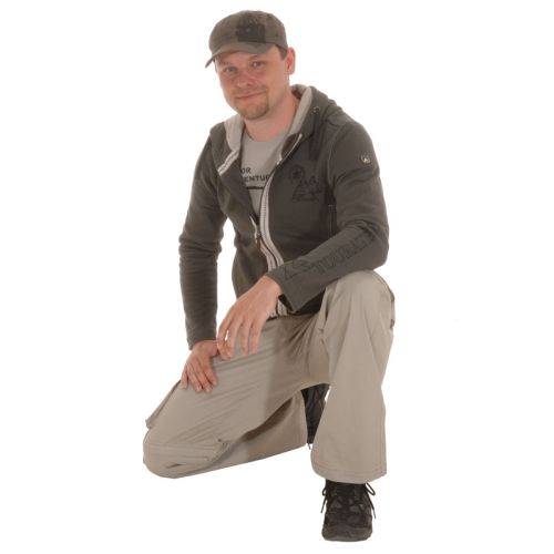 Cargo pants for pure adventure with zip-off legs and multiple practical pockets. Flat cargo pockets and angled reach-in pockets, two side pockets with flap and two back pockets. Touratech print inside waistband, branded buttons, woven world map badge. Touratech two-tone embroidery. Small label badge. Branded buttons and rivets. Made from washable cotton.