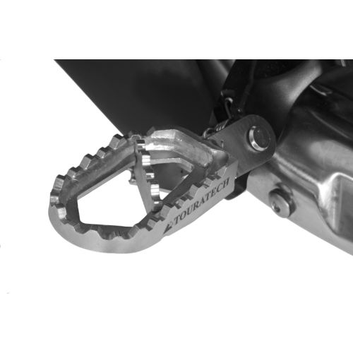 Touratech "Works" stainless steel foot pegs. The best that Touratech has to offer for your boots. Specially developed to meet the specifications of the Touratech works racing team.