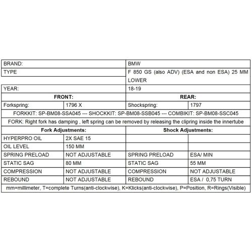 Height lowering kit -25mm for BMW F850GS / BMW F850GS Adventure from 2018 replacement springs